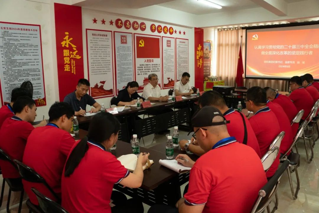 赵斌深入挂钩联系党支部——闽交监理第五党支部,向全体党员及分公司部分干部职工,作《认真学习贯彻党的二十届三中全会精神做全面深化改革的坚定践行者》主题宣讲。他强调,党的二十届三中全会把深化国资国企改革纳入进一步全面深化改革战略全局,既有方向性指引,又有实践性要求。干部职工要在全面学习、全面把握、全面落实全会精神上下功夫,切实增强推进改革的政治自觉、思想自觉和行动自觉,强化责任担当,发扬改革精神,为集团改革发展贡献力量。