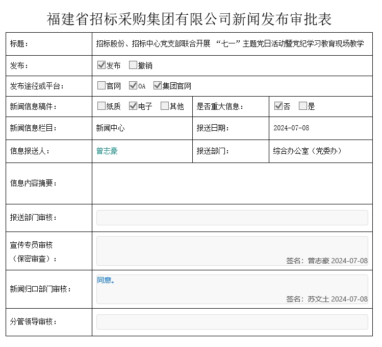 为庆祝中国共产党成立103周年,推动党纪学习教育走深走实,7月5日下午,福建省招标采购集团权属福建省招标股份有限公司、福建省招标中心有限责任公司联学共建,赴福建监狱警示教育中心基地开展“七一”主题党日活动暨党纪学习教育现场教学,切实增强党员干部党性修养和拒腐防变能力。