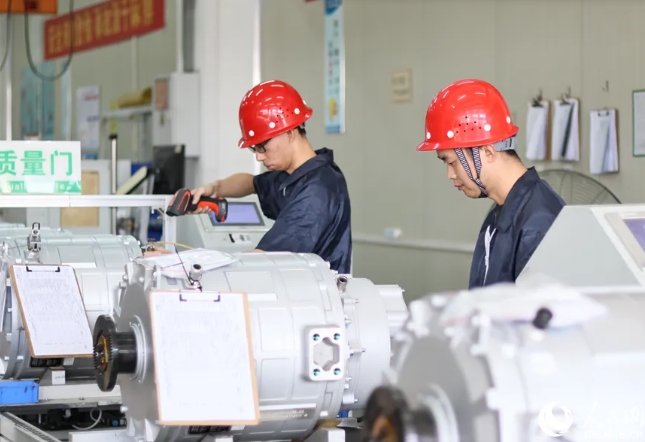 ▲金龙新能源车间内,技术人员进行电机电控关键技术组装。人民网 李昌乾摄