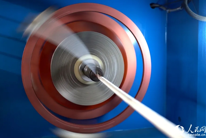 ▲通过技术升级,辉阳电缆生产端实现大幅提速。人民网记者 兰志飞摄