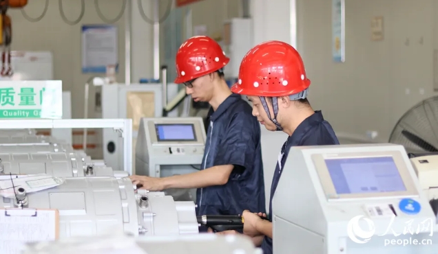 ▲金龙新能源的技术工人在进行电机电控关键技术组装。人民网 李昌乾摄