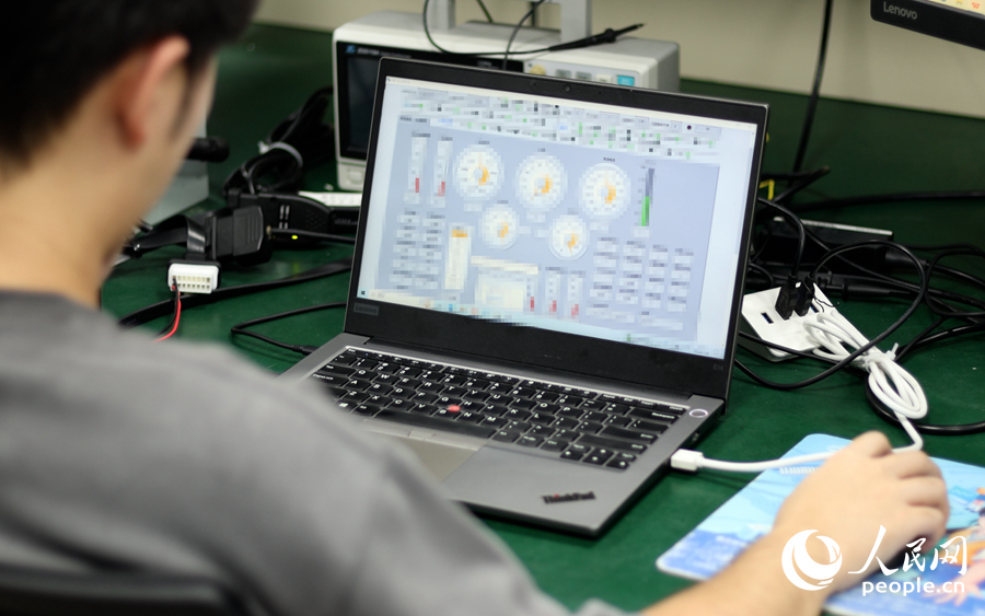 ▲在金龙新能源电控联合仿真实验室内,工程师在进行VCU(整车控制器)测试。人民网 李昌乾摄