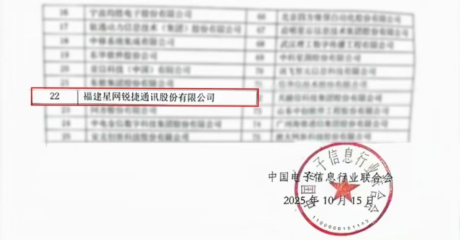 作为国内领先的ICT基础设施及AI应用方案提供商,星网锐捷始终以创新紧贴行业脉搏,以领先的产品及解决方案深入场景痛点,赋能行业升级,自2021年参评起连续五年登榜,是全社会对星网锐捷推动行业发展的又一重要肯定。未来,公司将持续深化自主创新及AI战略,攻坚新技术、挖掘新场景、开拓新业务、创造新模式,为推动中国软件与信息技术服务业迈向更高水平贡献数字力量。