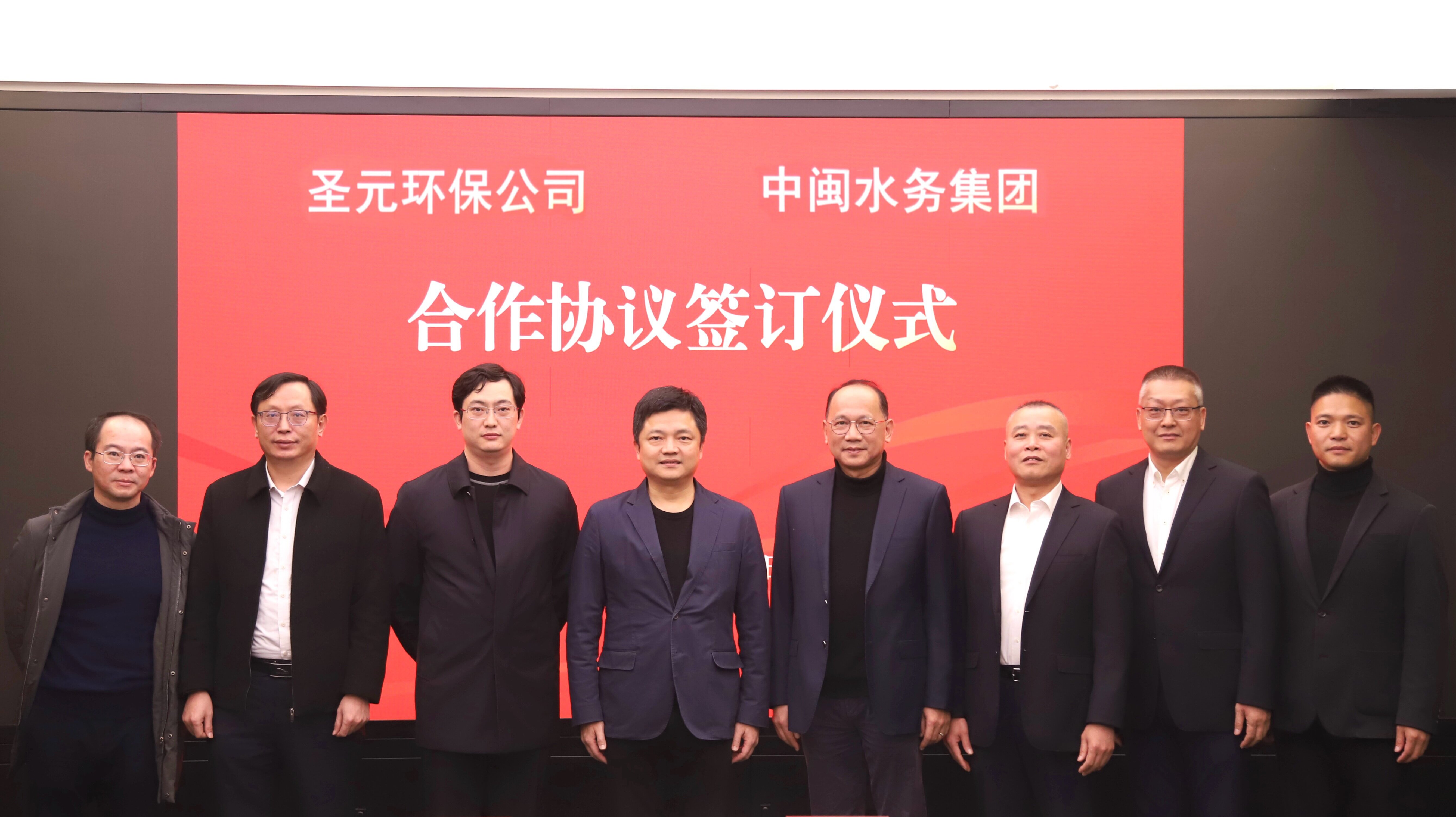 近日,中闽水务集团与圣元环保公司签订股权转让协议,福建水投集团副董事长、总经理吴健明,党委委员、副总经理叶辉,以及签约双方有关同志参加。