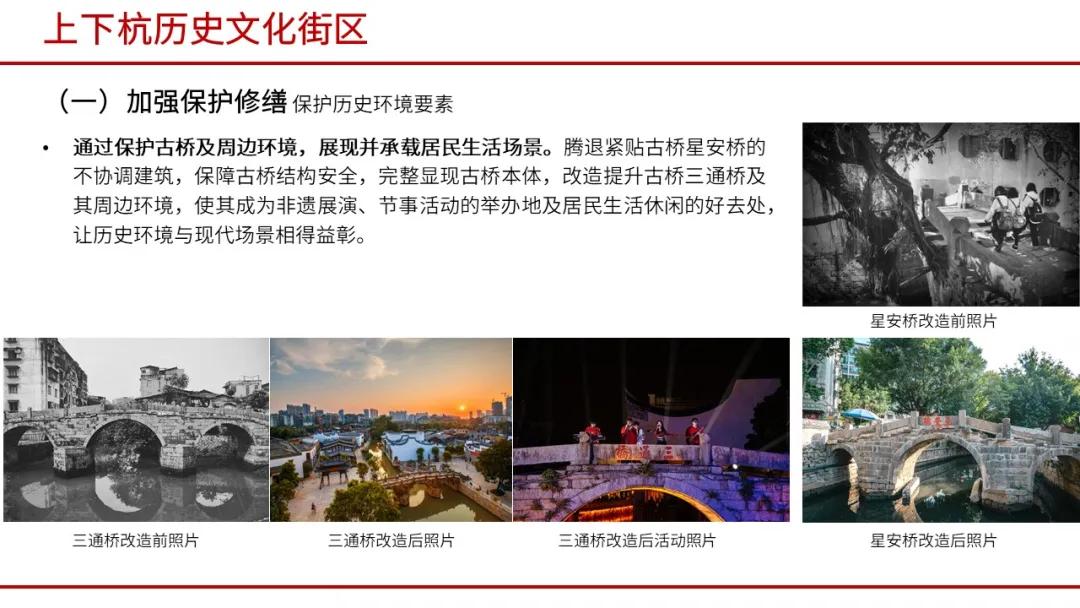 作为闽江沿岸的千年商港遗存,上下杭历史文化街区通过保护古桥及周边环境,展现并承载居民生活场景。对星安桥、三通桥等核心古桥资源进行修缮设计,街区通过腾退周边不协调建筑,既保障了古桥结构安全和文物本体完整呈现,又提升了古桥周边环境品质。如今,整治后的空间不仅是居民日常休闲的惬意空间,更成为非遗展演、特色节事的热门举办地,让古老街巷在烟火气中焕发新生,实现历史环境与现代生活的和谐共生。