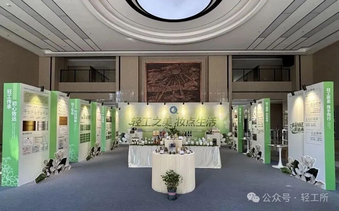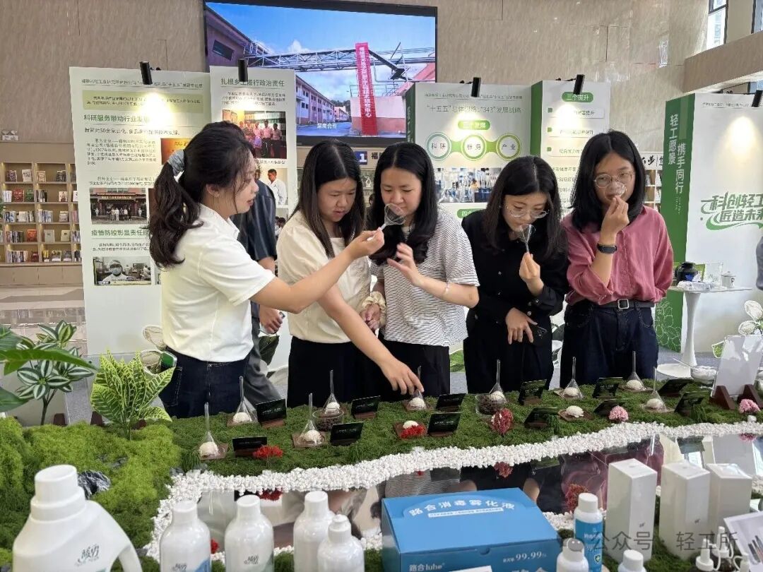 本次展览以“轻工绿”为主基调,融入清雅茉莉元素,围绕六大图文板块系统呈现轻工所在科技创新、成果转化、产业提质、服务社会等方面的奋进历程。产品展示与产品展销分区设置,共同构成展览亮点。产品展示区整体采用“工”字布局,结合福建“山、江、海”的地理特点,打造沉浸式展示场景,既突出福建的地域资源优势,也展现轻工所天然原料的多样化供给。该区域具体分为原料类、日化类、食品类、体验类四个部分,工作人员现场讲解产品特性、演示使用方法,参观者可近距离观察、体验,直观感受上下游产业链科研成果转化实效。产品展销区则同步展销核心产品,方便参观者深入了解产品详情、达成选购意向,实现成果展示与市场对接的双向赋能。